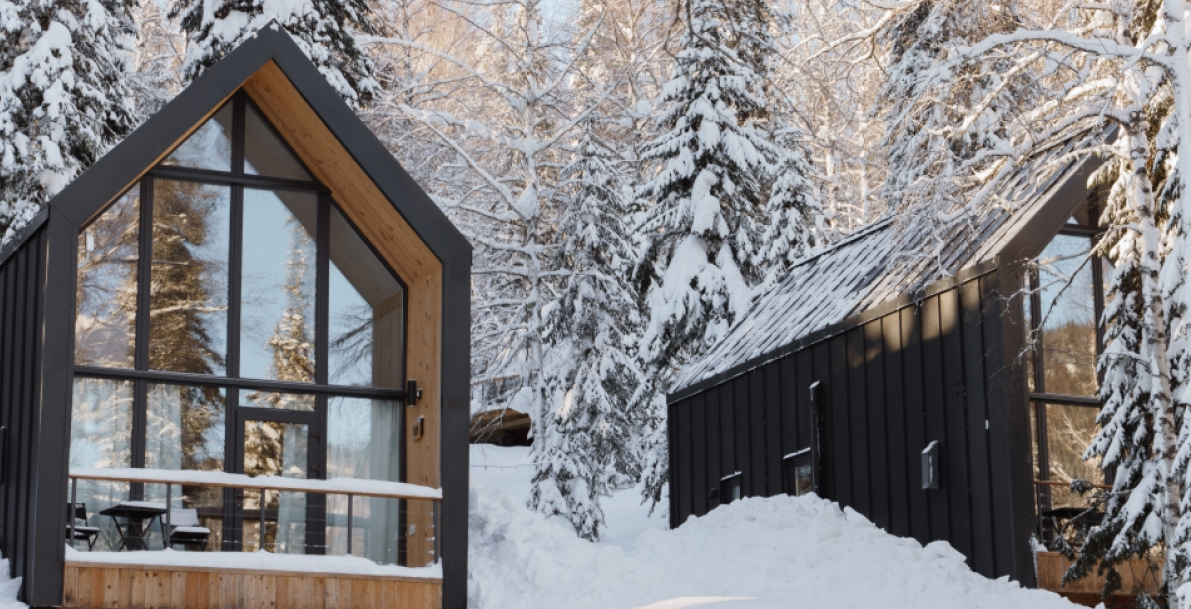Стоимость размещения в уютных и современных домиках начинается от 11 000 рублей в сутки за двоих. В каждом номере есть все необходимое для комфортного отдыха в горах и просторная терраса с видом на заснеженные склоны и таежный лес. Для гостей доступна бесплатная парковка, а после активного дня можно расслабиться в дровяной бане на территории.